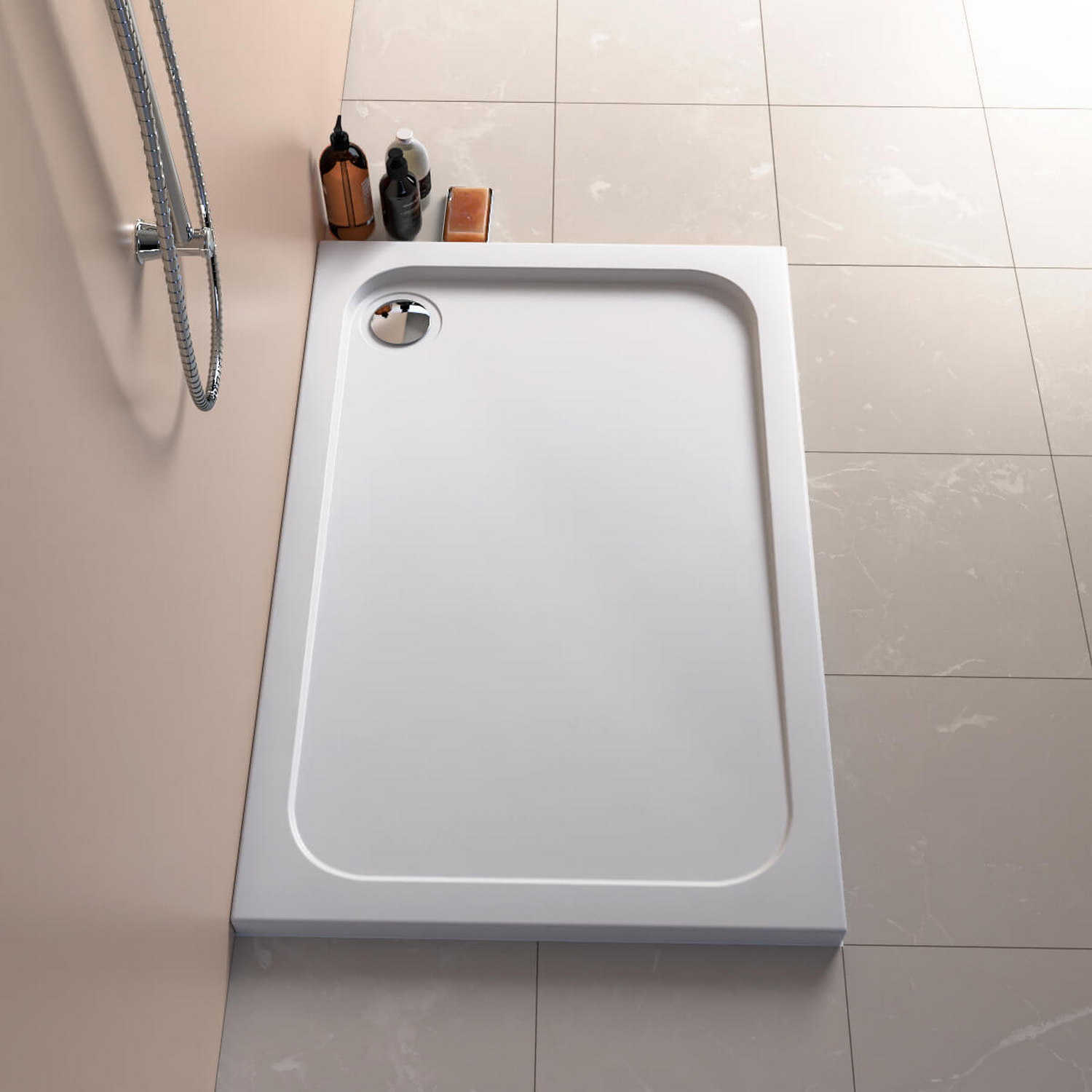 These are heavy, solid, and durable, such as the Kudos Kstone 45mm Stone Resin Shower Trays. They are typically installed directly onto the floor using a mortar mix or strong adhesive. Knowing how to remove a shower tray of this type involves more effort, as you often have to break the bond between the tray and the concrete or floorboards.