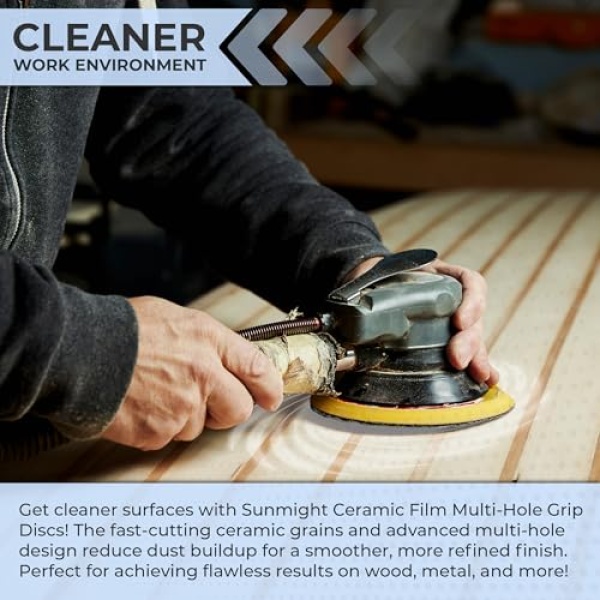 Sunmight Ceramic Film Multi-Hole Grip Discs – 320 Grit 6 Inch Sanding Discs Hook