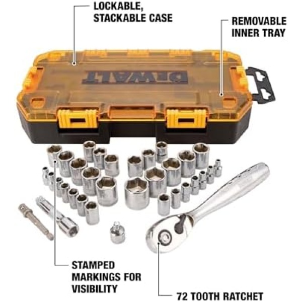 DEWALT Socket Set, 1/4-Inch & 3/8-Inch Drive, SAE/Metric, 34-Piece (DWMT73804)