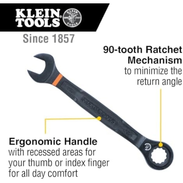 KLEIN TOOLS 69408G Ratcheting Combination Wrench Set, SAE, 8-Piece