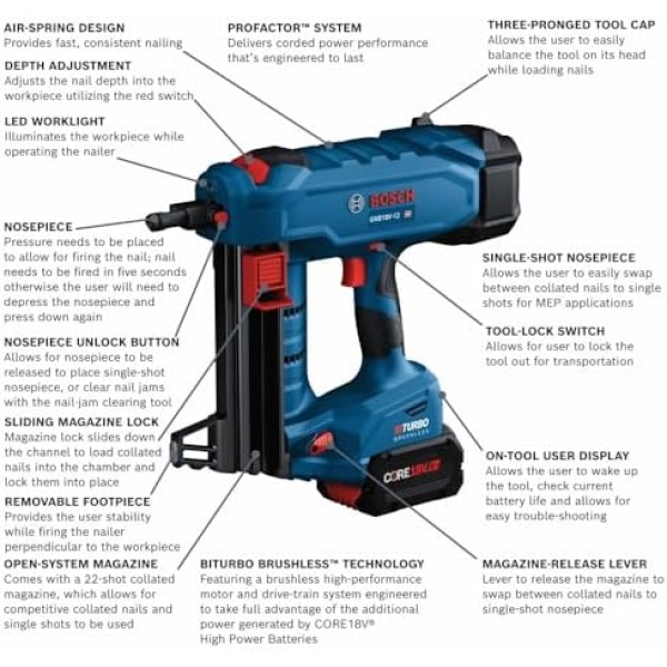 Bosch GNB18V-12K14 PROFACTOR 18V Concrete Nailer Kit with (1) CORE18V®