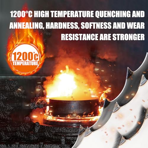 High-quality: Using high-density alloy steel and high-precision welding machine technology, the saw blade is not easy to break. After 1200°C high temperature quenching and annealing, the hardness, softness and wear resistance are stronger. Repeated stretching, traction, and coiling, the saw blade is smoother and tougher