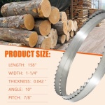Band Saw Blade Compatibility: 158″ sawmill blades are compatible with Wood-Mizer, Harbor Freight, Frontier, Timbery, TMG Industrial Mills. If your sawmill has the same specifications as a 158″ sawmill blade, you can safely choose it