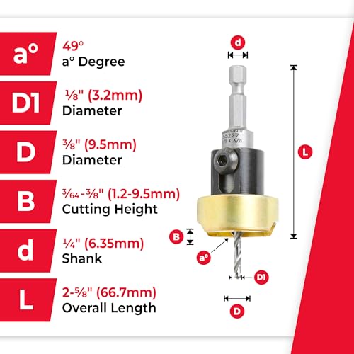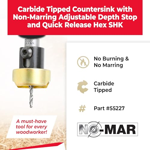IDEAL FOR EVERY WOODWORKER – 82 Degree Countersink set with Adjustable Drill Bit Depth Stop and No-Thrust Ball Bearing.