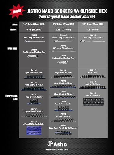 Designed to work with and retain Astro Nano style stubby impact sockets for a full working height of just 0.88”