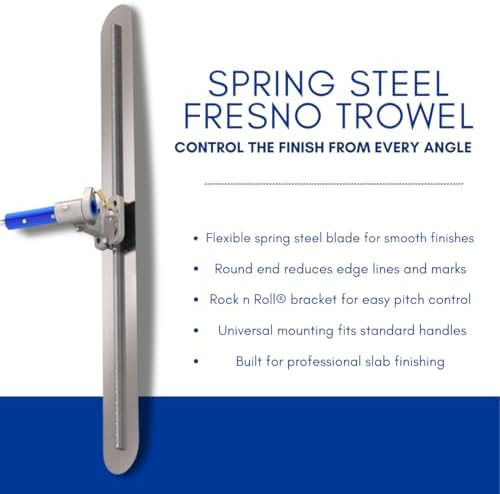 High-grade spring steel blade delivers controlled flexibility and strength for smooth finishing on large concrete slab surfaces