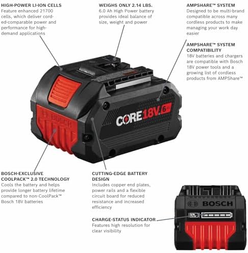 BOSCH-EXCLUSIVE COOLPACK 2.0 TECHNOLOGY: Cools the battery and helps provide longer battery lifetime compared to non-coolpack bosch 18v batteries