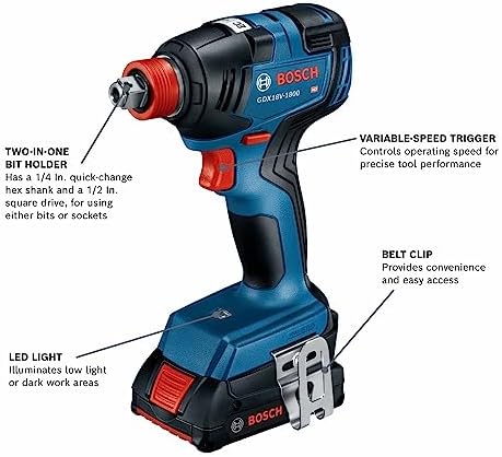 TWO-IN-ONE IMPACT DRIVER/WRENCH: Features a 1/4 in. hex shank and a 1/2 in. square drive, for using either bits or sockets