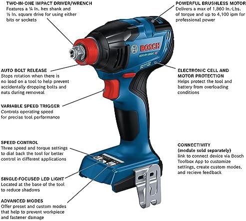 Bosch GDX18V-1860CN 18V Connected-Ready Two-In-One 1/4 In. and 1/2 In.