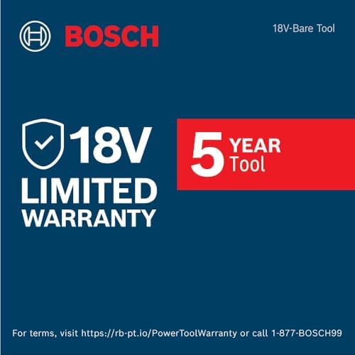 Bosch 18V cordless power tools are covered by a five-year limited warranty for details, visit the Bosch Tool website or call 1-877-BOSCH99