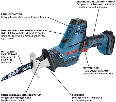 BOSCH GSA18V-083B 18V Cordless Reciprocating Saw – Lightweight & Compact, 0.83″