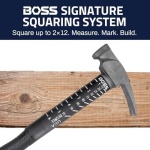 Integrated Squaring System – Unique flat shoulder and claw design doubles as a framing square, allowing accurate 90° layouts, degree markings, and cut measurements.