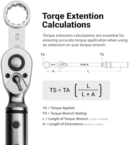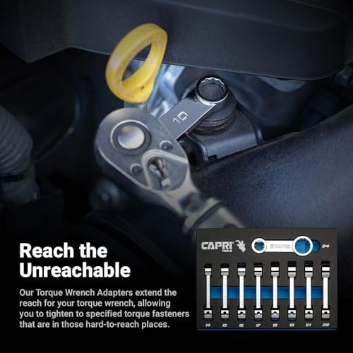 The torque adapter extends the reach for your torque wrench, allowing to tighten fasteners in hard-to-reach places to specified torque