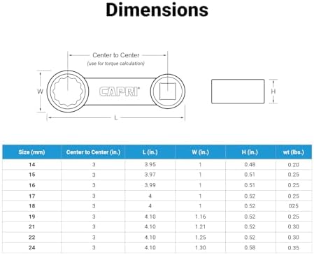 Capri Tools 1/2 in. Drive Torque Adapter Set, 12-Point Box End, 14 to 24 mm