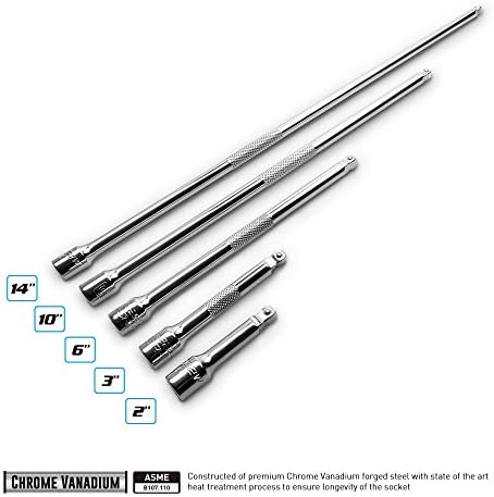 Five 1/4 in. drive wobble extension bars: 2, 3, 6, 10 and 14 in. long
