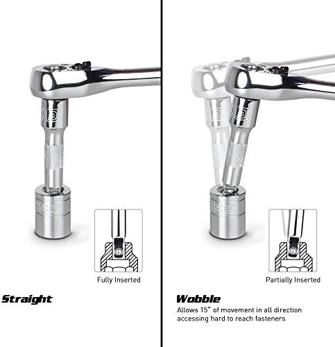 Wobble feature lets you reach and turn fasteners that can only be reached at an angle up to 15 degrees