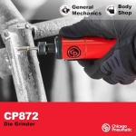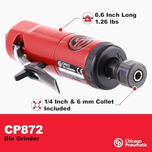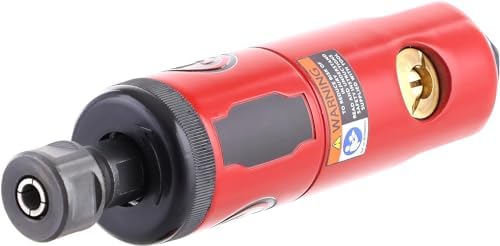 General Specifications: 1/4 inch (6 mm) collet, 0.63 HP (470 W), 27,000 RPM, air consumption at load 20 CFM, weight 1.26 lbs