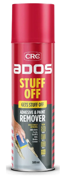 CRC Stuff Off – gets stuff off! A powerful cleaner/remover that is designed to soften or dissolve most adhesives and paints as well as uncured laminating resins and uncured sealants. The gel formula clings to the surface making it also ideal for vertical applications. It also removes paint spills, graffiti, inks and grease.