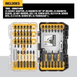 The range of bit types supports fastener profiles frequently encountered in HVAC, electrical, plumbing, carpentry, and maintenance