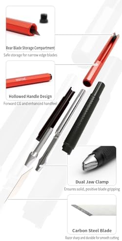 Revolutionary Design- Rear blade storage compartment,Safe storage for narrow edge blades. Dual jaw clamp Ensures solid, positive blade gripping Hollowed handle design Forward CG and enhanced handfeel.