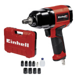 The Einhell compressed air impact driver TC-PW 340 takes on the work in the home, workshop and garage powerfully. The impact driver has a maximum torque of 340 Nm. The non-slip rubberized grip ensures safe and pleasant working in any situation. Equipped with left (single-stage) and right-handed rotation (three-stage), the compressed air impact driver has a variety of tasks. The impact driver offers best performance from an inner diameter of 9 millimeters. The maximum working pressure is 6.3 bar, the maximum thread size is 14 millimeters. The equipment includes 8x sockets in the usual sizes 8/10/11/13/17/19/21/22 mm as well as 1x oil bottles and 1x plug nipple. The compressed air impact driver TC-PW 340 from Einhell is thus immediately ready for use. Supplied in a practical transport and storage case.
