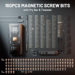 【160 Bits +8 Types Fix Tools】It includes 160 precision CR-V steel screw bits, which are corrosion-resistant, strong, and durable. Additionally, it features 4 long S2 steel bits for enhanced performance. The kit also offers 8 electronic maintenance tools, including an opening pick, ESD tweezers, pry bar, extension shaft, and suction handle. It’s compatible with most electronic devices, including cell phones, laptops, Switch, and cameras.