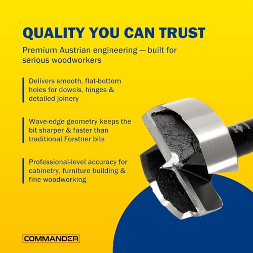 Forged Steel Construction: This drill bit set is crafted in Austria from forged high-speed steel for exceptional durability, heat resistance, and long-lasting performance. It is an essential addition to any professional or hobby woodworking tool set