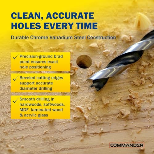 PROFESSIONAL GRADE WOODWORKING: Specifically designed for woodworkers looking to achieve clean and accurate holes with minimal effort. The sharp Chrome-vanadium coated brad point bit stays cooler which allows the bit to stay sharper longer.