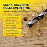 ENHANCED DRILLING SPEED DESIGN – Advanced cutting geometry enables faster drilling than standard metal bits, helping this drill bit set maintain smooth, clean holes during repetitive woodworking, cabinetry, and furniture assembly tasks.