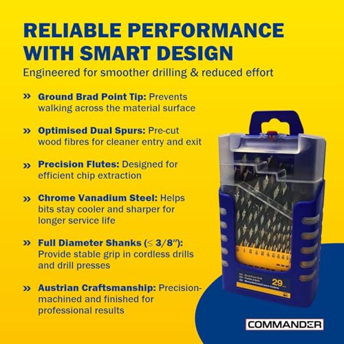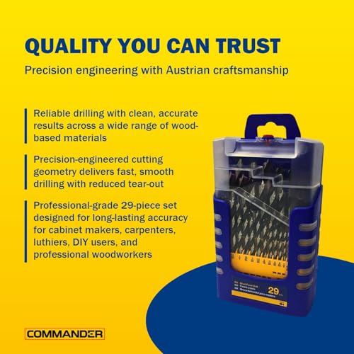 MADE IN AUSTRIA CRAFTSMANSHIP – Expertly manufactured in Austria, this drill bit set offers consistent machining quality and durability, making it a dependable component of any professional or DIY woodworking toolkit.
