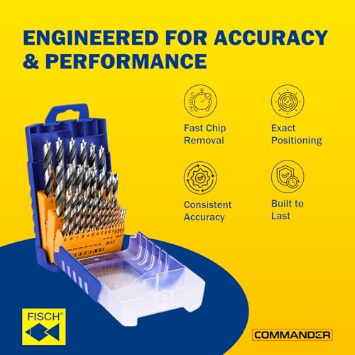 Fisch Chrome Vanadium Brad Point Wood Drill Bit Set, 29-Piece (1/16″–1/2″)