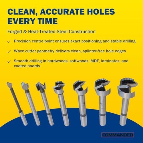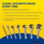 VERSATILE MATERIAL COMPATIBILITY – Designed for hard and softwood, laminated boards, coated chipboard, and MDF, this drill bit set ensures consistent, splinter-free results across multiple woodworking materials