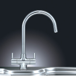 • Elegant swan neck twin lever kitchen tap