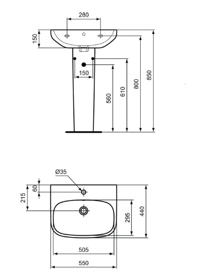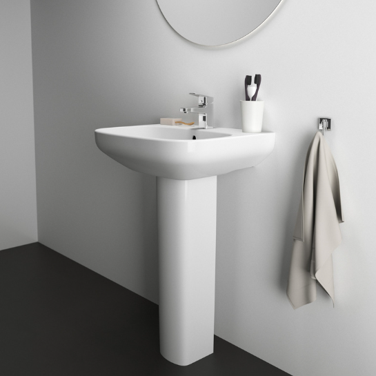 Featuring a smooth and rounded profile with a classic white finish, the sink combines an impressive 55cm basin width with a full pedestal to help you make the most of even the smallest bathroom spaces.