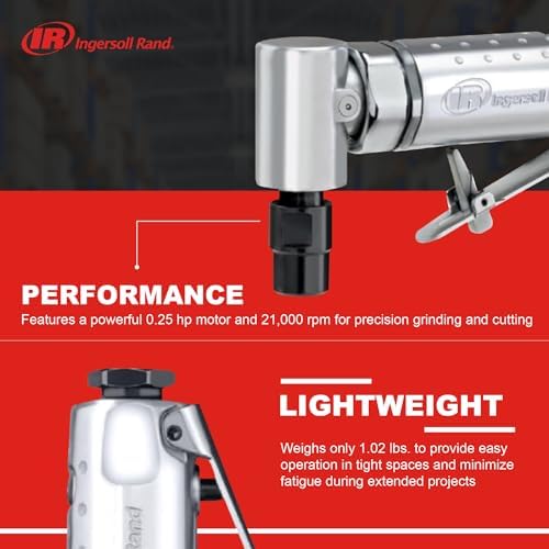 SMALL + LIGHT: Ingersoll Rand Air Die Grinder 301B has a light but sturdy design and weighs only 1.02 lbs; It provides easy operation and better access to tight spots