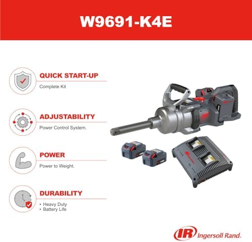 Ingersoll Rand W9691-K4E W9000 Series 20-Volt 1-Inch Cordless Impact Wrench Kit