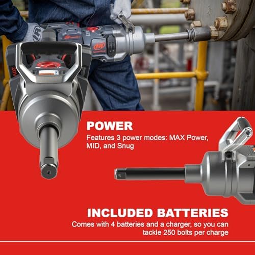 RELIABLE IMPACT WRENCH: Invest in quality with the Ingersoll Rand W9000 Series 1-Inch Cordless Impact Wrench. This 20-volt wrench features an IQV Power Control System that delivers 3,000 ft-lbs of torque and 2,200 ft-lbs of tightening torque.