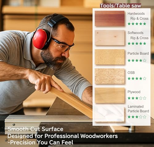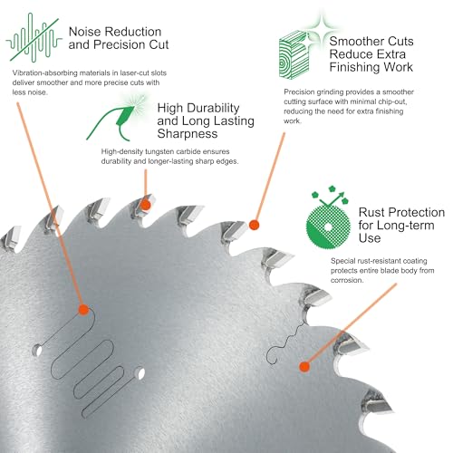 Precision-ground 40 teeth (ATB) with 5/8″ arbor, ideal for softwood, hardwood,particle board, and veneer.