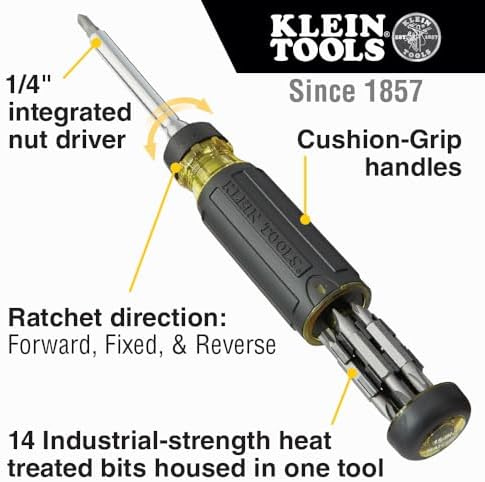 Multi-Bit screwdriver features a durable ratcheting mechanism for faster and easier all-day driving