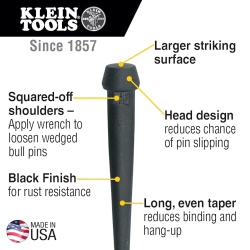 Below the head, squared-off shoulders have been forged to provide a surface for applying wrench to loosen wedged bull pins