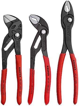 Introducing the ultimate pliers set from KNIPEX, the first KNIPEX set that includes the very popular TwinGrip Pliers. Each tool is crafted with the highest quality materials to tackle any project with confidence. Each set includes one (1) each of: Cobra Water Pump Pliers, Pliers Wrench and TwinGrip Pliers, ensuring that you have the right tool for any job