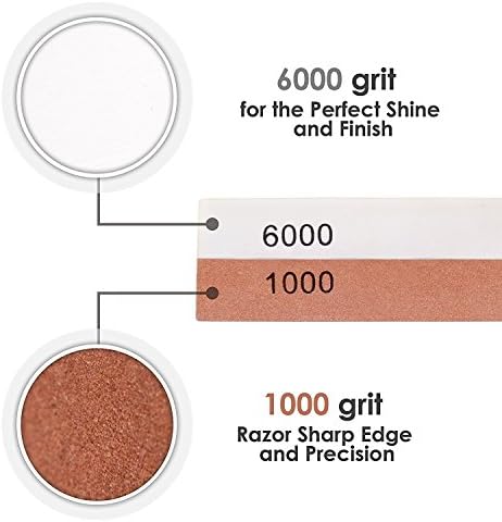 Dual Grit Design (1000/6000) – Achieve razor-sharp precision with this two-sided whetstone: Use the 3000 grit for refining and the 8000 grit for ultra-fine polishing to restore a mirror finish on your blades