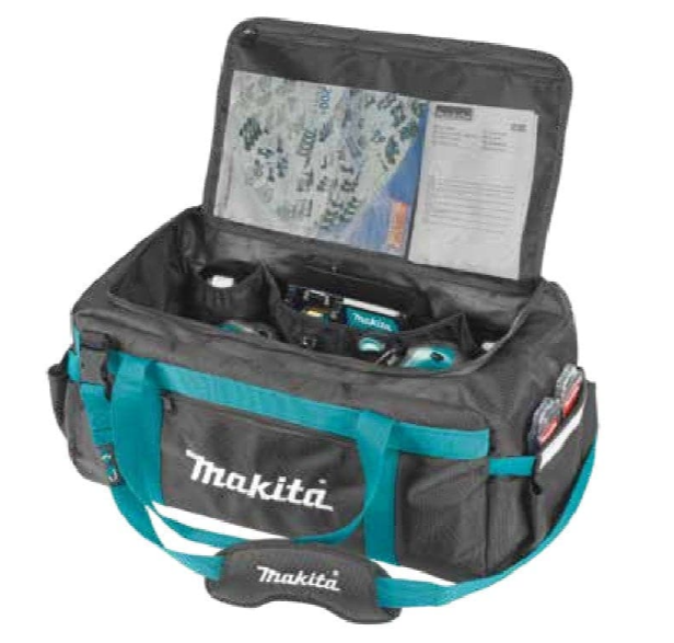 Convenient for storing and carrying a set of tools. Equipped with a large number of pockets both inside and outside for organising small items. Made from materials with excellent water repelling properties and durability. 55 litre capacity