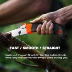 Aggressive staggered teeth ( 5.5 TPI ) with 4 cutting angles, allows ultra smooth and sharp sawing, helps you power through thick branches more faster and easier