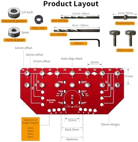 Widely Used: All-metal shelf pin and hinge jig made of aluminum alloy material with friction-resistant surface. Multi-functional and multiple mounting size options are designed to already meet your common shelf pin hole and hinge installation. Perfect for DIY, woodworking and home improvement.