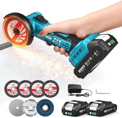 SEESII Cordless Mini Angle Grinder: 3-Inch Brushless Angle Grinder 19000 RPM