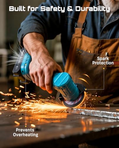 Enhanced Safety System: Designed with overheat and overload protection, the battery-operated grinder ensures safe operation even under extended use. This cordless angle grinder features an advanced cooling system to ensure safe operation and extend the lifespan of the machine.