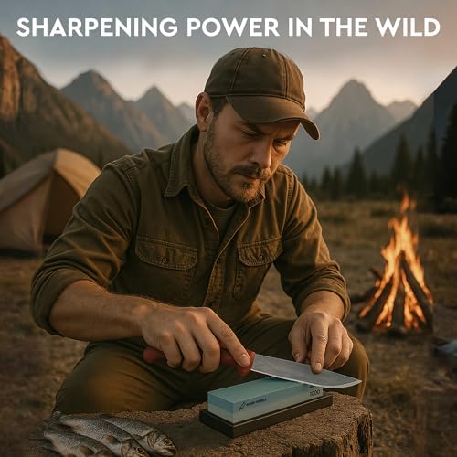 Multipurpose Use: Our wet stone knife sharpener can reprofile edges or repair Any Dull blade out there, be it any kitchen knife set, chef knife, steak knife, santoku knife, paring knife, sushi knife, cleaver knife, kitchen knives, Diving knife, Machete, Katana, Hunting Knife Sharpener, Pocket Knife Sharpener, Scissors, Chisels, Blade sharpener, Straight Razor, Carving and Gardening Tools & it can even sharpen a dull Sword