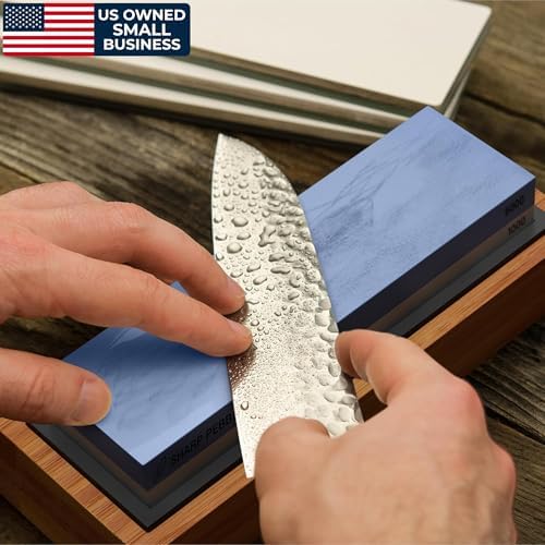 Superior Bundle: Sharp Pebble knife sharpening kit comes with double-sided (#1000/ #6000) whetstone knife sharpener, a sturdy bamboo base for holding the stone, knife sharpening angle guide, a simple instruction manual & detailed ebook with lots of Tips & Tricks which will appeal at every skill level