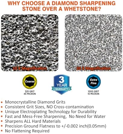 𝐖𝐡𝐲 𝐂𝐡𝐨𝐨𝐬𝐞 𝐃𝐢𝐚𝐦𝐨𝐧𝐝 𝐎𝐯𝐞𝐫 𝐖𝐡𝐞𝐭𝐬𝐭𝐨𝐧𝐞𝐬: Diamond sharpens even the hardest steels, including super steels like CPM-series, M390, and Elmax. Unlike traditional whetstones, diamond sharpening plates stay flat, require no lapping, work dry without mess, and deliver more efficient, consistent results.